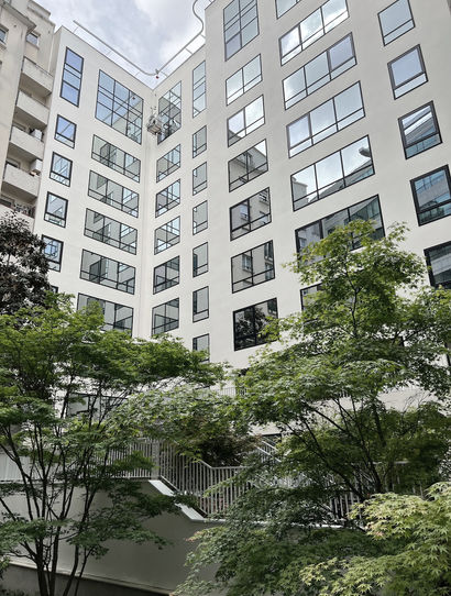 L’intégration de la nature est un élément phare de cette réhabilitation. A la demande du Maître d’Ouvrage, nous avons cherché à inscrire le bâtiment dans un cadre verdoyant, où la végétation s’intègre aux façades, aux loggias et aux terrasses. Les espaces extérieurs, dont un rooftop de 365 m² au 10e étage, viennent prolonger les espaces de travail, offrant aux utilisateurs un cadre plus agréable et une connexion avec l’environnement extérieur. Ce projet architectural vise à redéfinir la relation entre l’espace de travail et la nature, améliorant ainsi la qualité de vie des occupants.